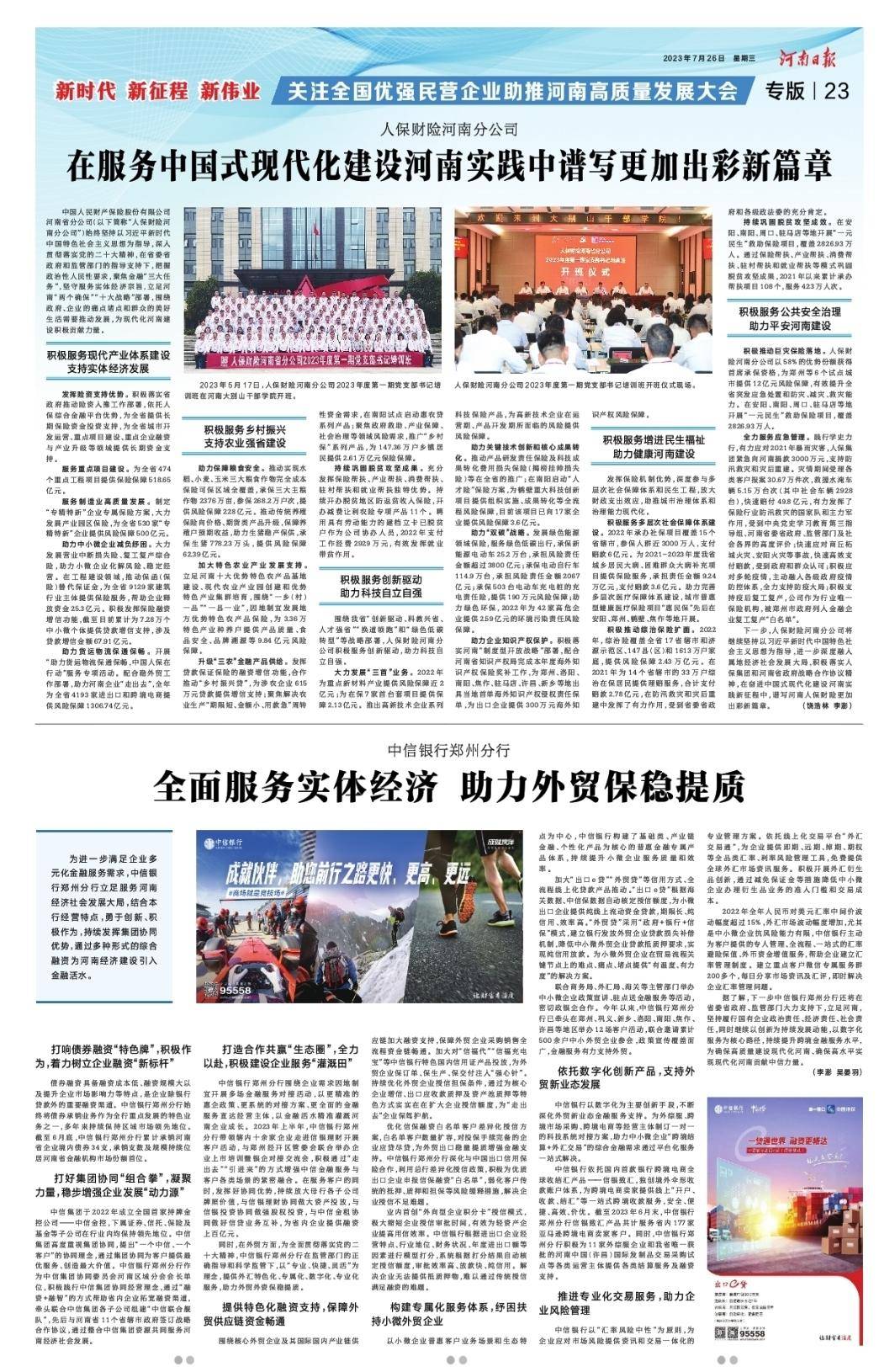 同时,在外贸方面,为全面贯彻落实党的二十大精神,中信银行郑州分行在监管部门的正确指导和科学监管下,以“专业、快捷、灵活”为理念,提供外汇特色化、专属化、数字化、专业化服务,助力外贸外资保稳提质。