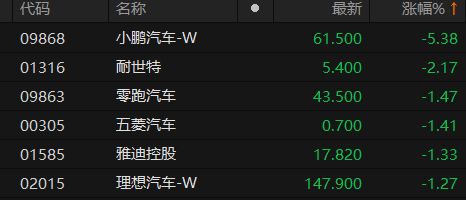 原标题:港股汽车板块盘初多数走低 小鹏汽车下跌近6%