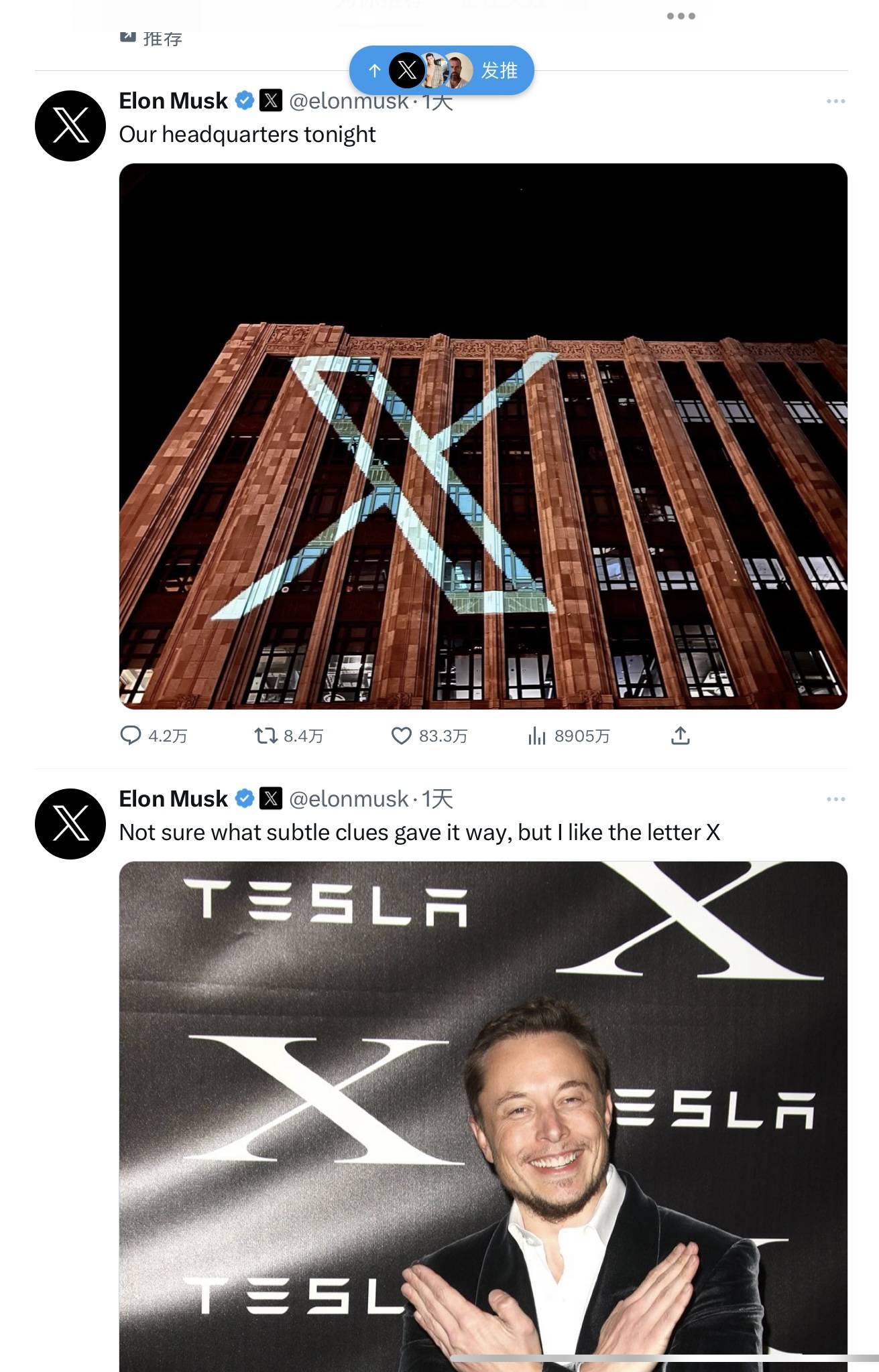 大家都知道马斯克还成立了太空探索公司SpaceX,这里面的“X”也说明马斯克对X的偏爱。