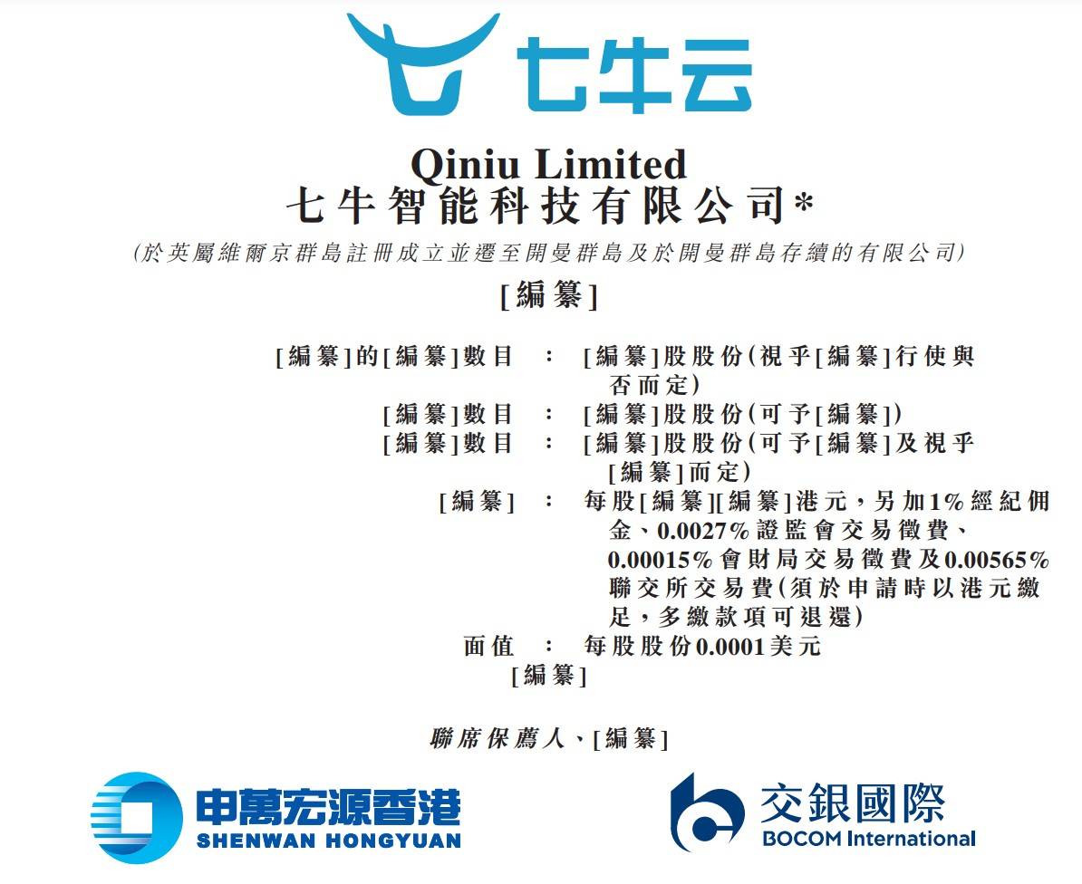 6月29日,七牛智能科技有限公司 Qiniu Limited向港交所递交招股书,拟在香港主板挂牌上市。申万宏源香港、交银国际为联席保荐人。