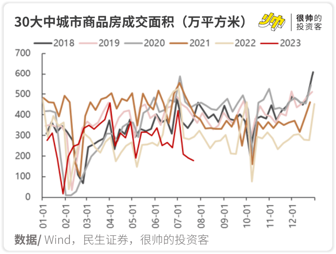 就连大中城市的成交面积也在同比下滑了——