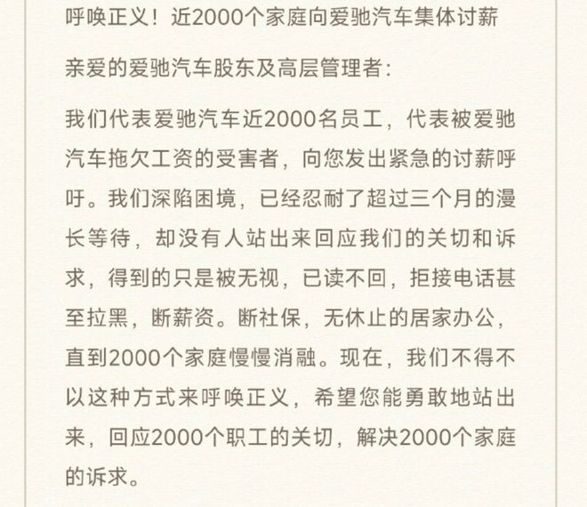 今年5月,爱驰开通了自费垫付社保公积金缴费通道,让本就没有拿到工资的员工自掏“腰包”,且将劳动合同变更至上海亿维之家公司,紧接着又发生了近2000名员工集体讨薪一事。