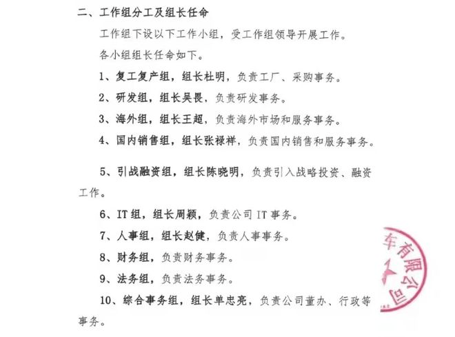 同时,为整顿公司业务经营,恢复日常运行,爱驰给所有员工都发布了一则关于成立股东治理临时工作组的通知,由朱小华、付强担任组长,负责公司运营管理工作。