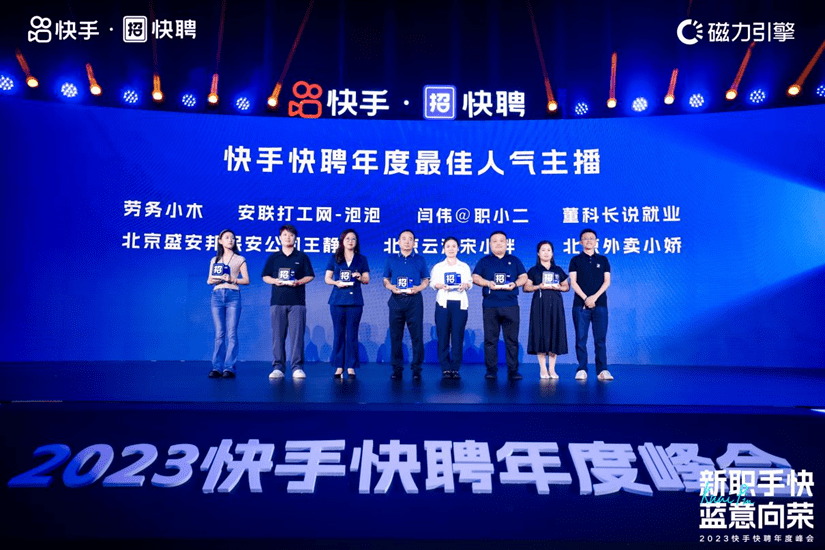 主播以真实互动建立起强信任关系,成为提升供需匹配效率的重要推动力。为鼓励突破传统招聘模式,探索出富有鲜明个人特点和优质内容的直播带岗新范式的优秀主播们,快聘颁发了快手快聘年度最佳人气主播奖项,劳务小木、安联打工网-泡泡、闫伟@职小二、董科长说就业、北京盛安邦保安公司王静、北京云派宋小胖、北京外卖小娇七位主播荣获该奖。