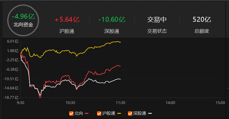 原标题:北向资金半日净卖出4.96亿元