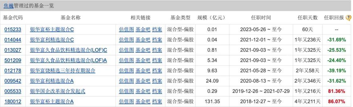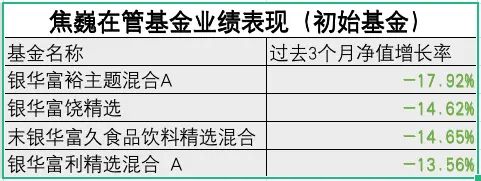 其中,银华富利精选混合A亏超30%,银华富饶精选三年持有期混合亏近40%,银华富久食品饮料精选混合(LOF)A表现稍好,但也亏了24.4%。