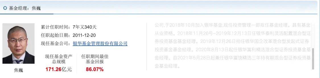 凤凰网财经《投资观察》发现,尽管近两年业绩不佳,但焦巍在银华富裕混合A的任职回报依旧高达86.07%。这也是他目前在管产品中,任职回报最好的一只。另外3只(初始基金)任职回报均处于亏损状态。