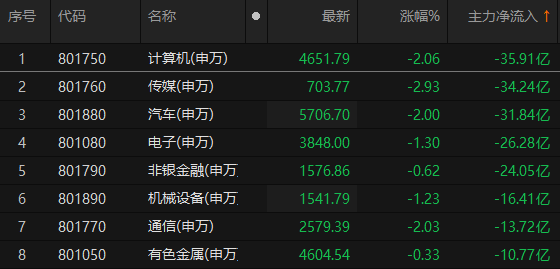 原标题:计算机、传媒、汽车板块主力资金净流出额超30亿元