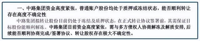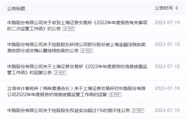 最新的公告上看,中路集团的部分股份被拍卖,持股比例从27.09%减少到了24.83%。