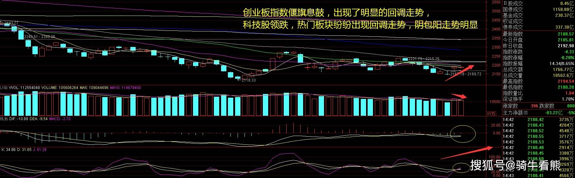 创业板指数周三低开后始终是水下震荡为主,并没有出现带头拉升的迹象,这也导致了赚钱效应较差。全天都是跌多涨少的局面,周三盘中出现了房地产有资金青睐,就只剩下个股的拉升表演,游资和机构资金偃旗息鼓,都以为有肉可吃,结果大涨一天后的回调,让大家更加清醒了。接下来注意创业板指数能否在2170点之上稳住。