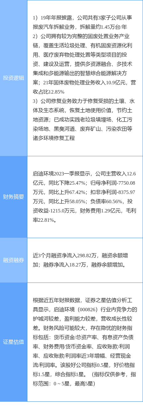 启迪环境涨停收盘,收盘价3.3元。该股于9点51分涨停,未打开涨停,截止收盘封单资金为6556.51万元,占其流通市值1.39%。