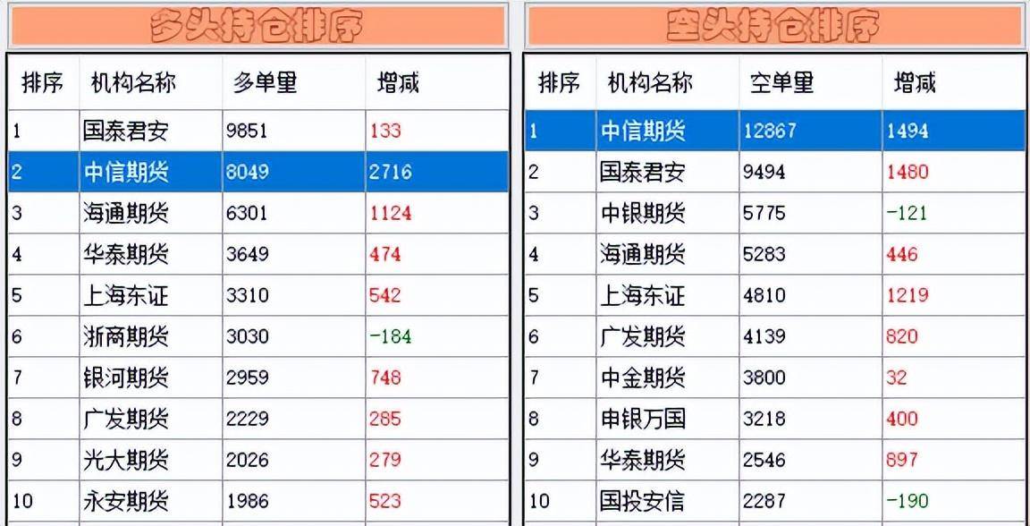 先来看下对下一个交易日有预判作用的“神器”——中信期货在股指期货上的增减持情况。它在沪深300股指期货上多单方面增仓2716手,空单方面增仓1494手,给出了“偏多”的信号——预判失误。
