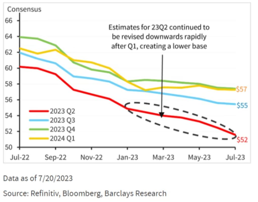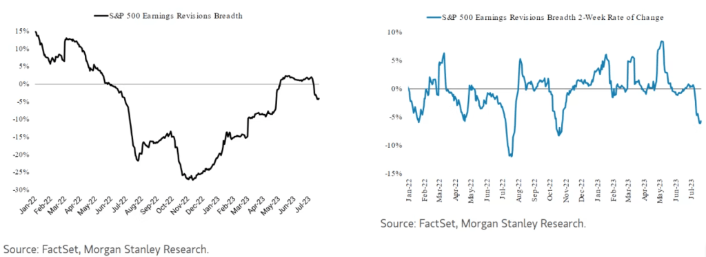 由于五分之一的美国企业公布了第二季度业绩,盈利预期下调的数量超过了上调的数量。而且下调主要集中在消费服务、家庭和个人产品以及资本货物领域。显而易见,贪婪通胀(企业利润高企导致通胀持续居高不下)已经缓解。