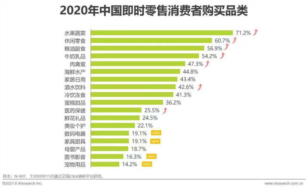 *生鲜处于即时零售品类的前几名,图源/艾瑞咨询