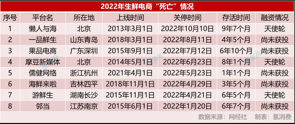 *2022年生鲜电商死亡名单,制图/氢消费