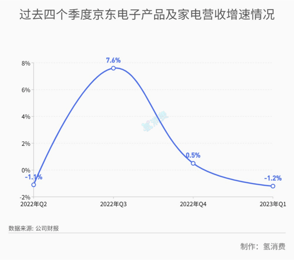 *过去四个季度,京东的基本盘3C产品营收增速直线下滑,2023年Q1已处于负增长