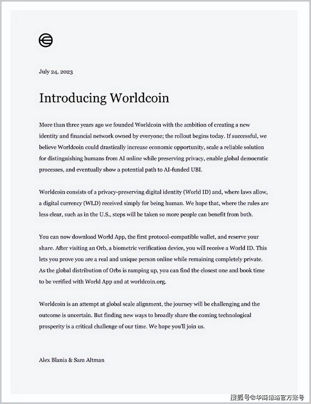 现在,有人把方案拿出来了:当地时间7月24日,OpenAI首席执行官山姆·奥特曼,正式推出了他的数字货币项目“世界币”。