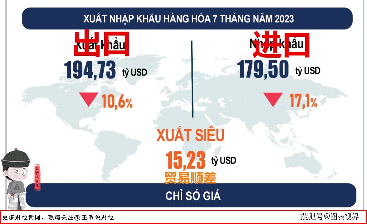 具体数据来看,今年1-7 月,越南出口额1947.3亿美元,同比下降近11%(10.6%);
