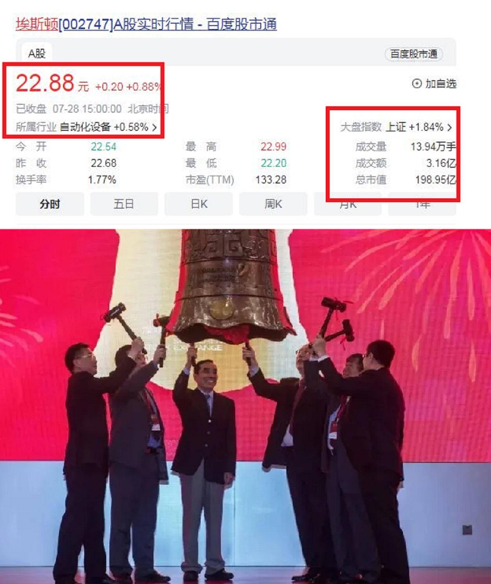 截止北京时间2023年7月30日,埃斯顿的最新市值为198.95亿元。这一成就离不开吴侃的付出和决策,这也是他对家族企业的一份责任和担当。