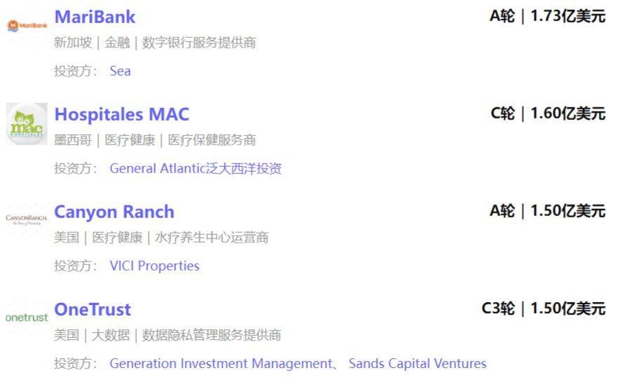 本周海外一级市场大额融资事件