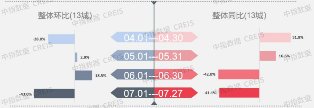 ▍交易:7月楼市整体同环比下降,二、三线城市降幅显著