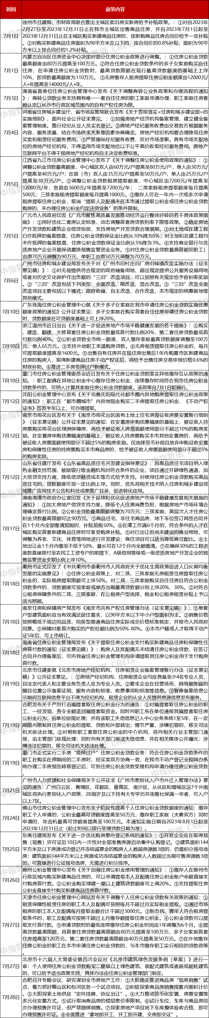 表:7月地方政府楼市调控重点政策一览