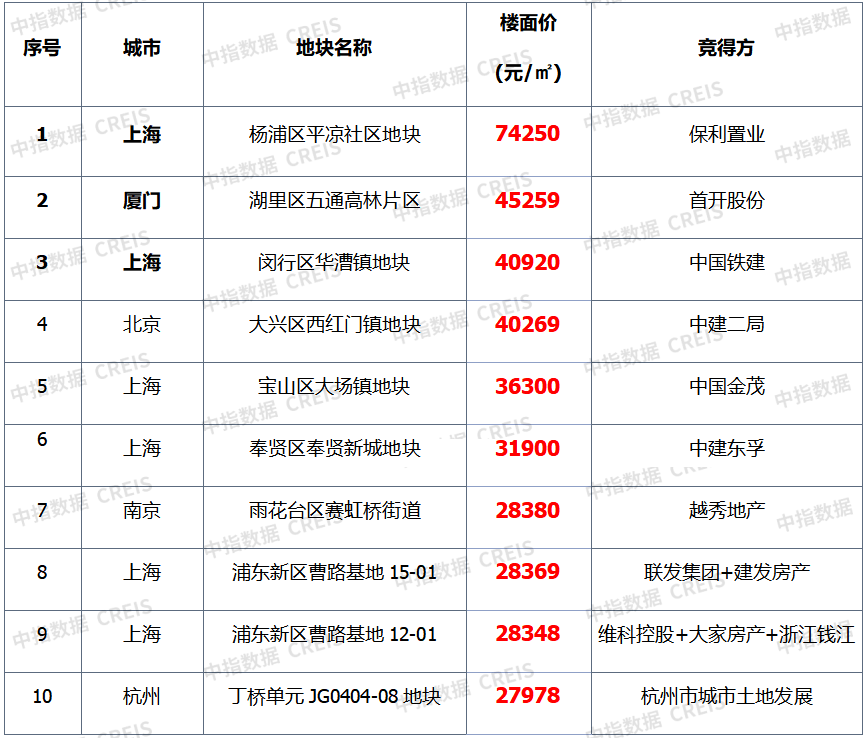 榜单均价同比下滑逾三成,入榜门槛跌至27978元/㎡,一线城市占榜单七席,上海杨浦区宅地居单价榜首位。