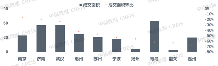 图:二三线重点城市成交面积环比涨跌幅