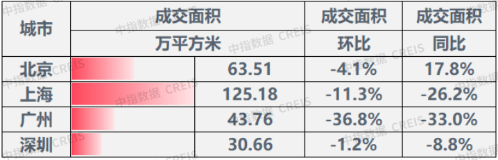 表:一线城市成交面积同环比情况