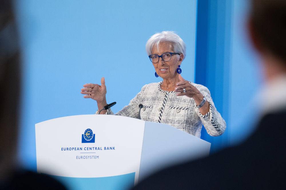 6月15日,欧洲中央银行行长拉加德在德国法兰克福欧洲央行总部举行的新闻发布会上讲话。新华社发(欧洲央行供图)