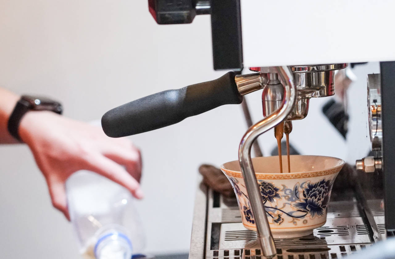 北京大栅栏内联升“大内·宫保”咖啡厅内,工作人员用中式茶杯承装浓缩咖啡。陈钟昊 摄