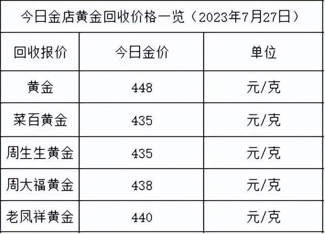 具体各大品牌金店最新价格见下表格: