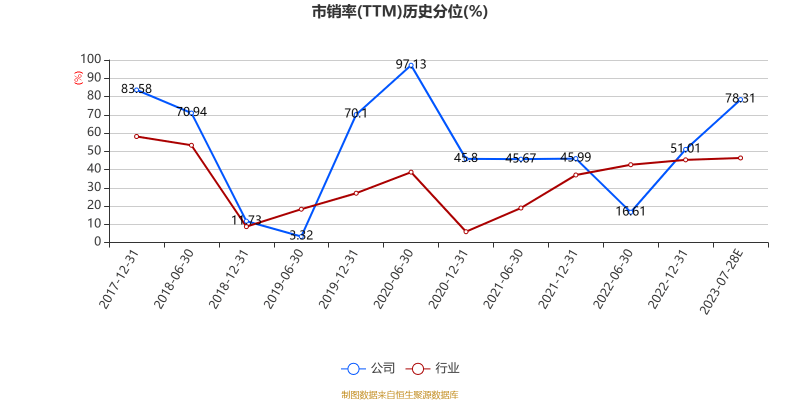 公司近年市盈率(TTM)、市净率(LF)、市销率(TTM)历史分位图如下所示: