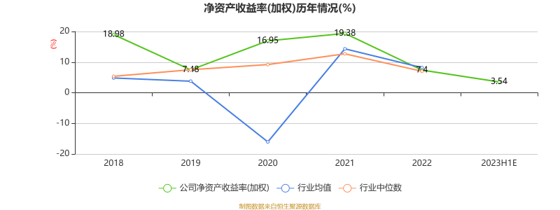 数据显示,2023年上半年公司加权平均净资产收益率预计为3.54%,较上年同期下降1.35个百分点。