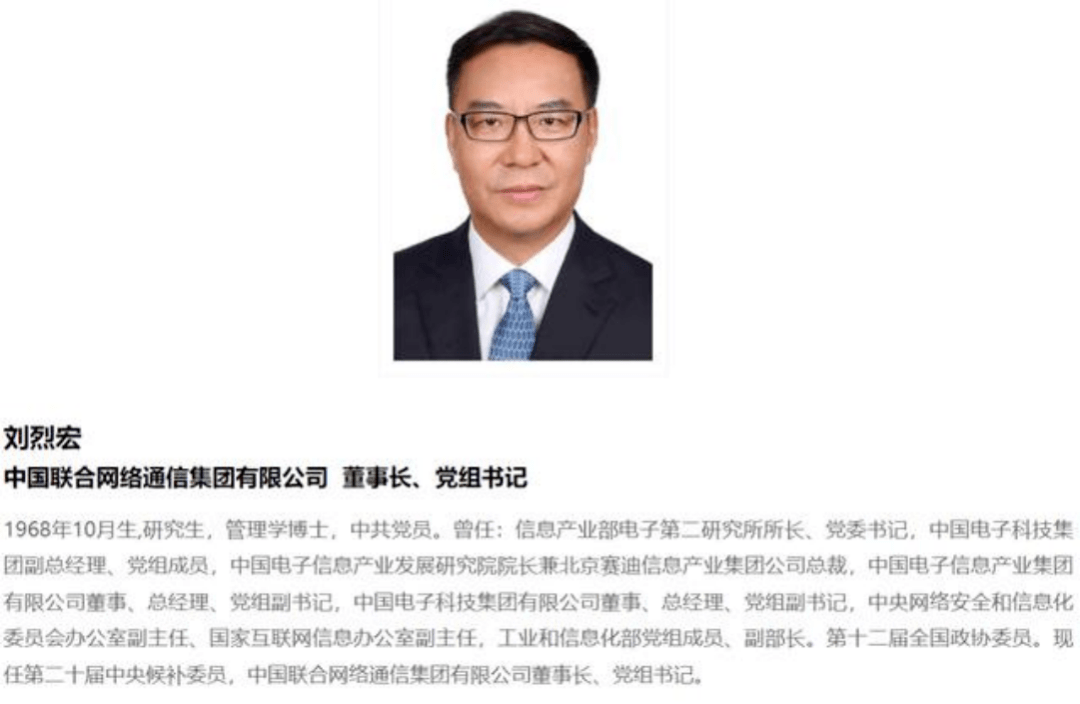目前,中国联通官网领导成员一栏已进行更新,不再保留刘烈宏任职信息。