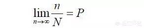 有一个可以可以独立重复的实验,每次实验发生 事件A的概率是P,那么当实验次数N趋向于无穷大时,发生事件A的次数n与总次数N的比等于概率P,即: