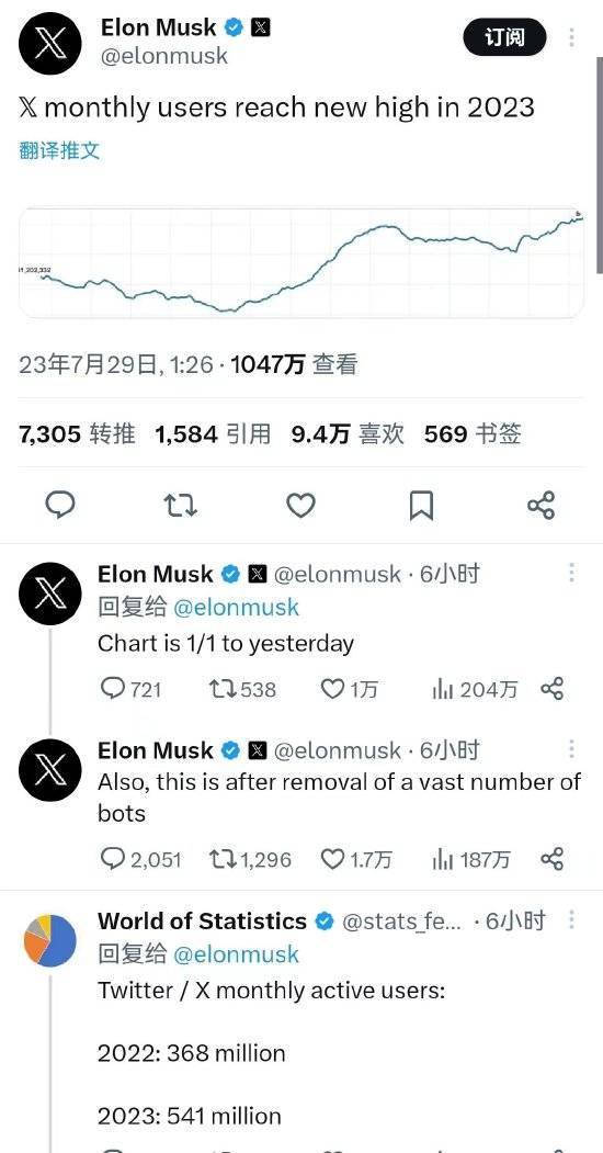 原标题:马斯克:X月活跃用户突破5.4亿