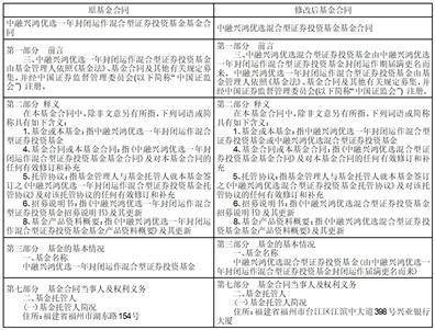基金合同、托管协议修订前后对照表