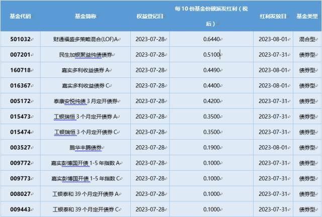 7月28日新发基金共有2只,为混合型基金,其中鹏扬景添一年持有期混合A募集目标金额达60亿元;基金分红12只,多为债券型,派发红利最多的基金是财通福盛多策略混合型发起式证券投资基金(LOF),每10份基金份额派发红利0.6440元。