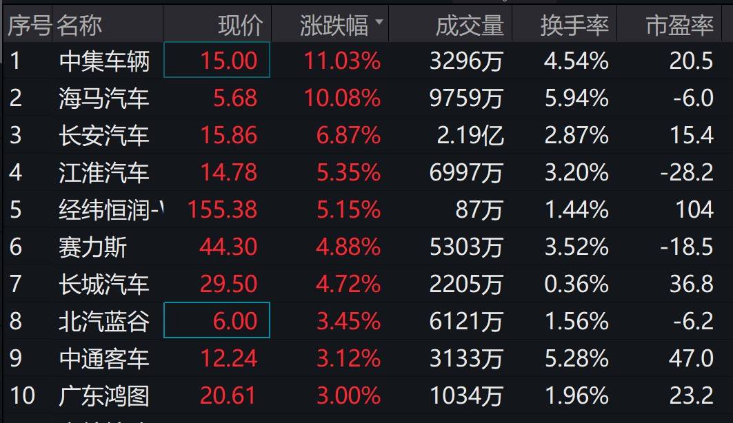该基金紧密跟踪中证全指汽车指数。指数成分股中,中集车辆上涨11.03%,海马汽车上涨10.08%,长安汽车上涨6.87%,江淮汽车、经纬恒润-W等个股跟涨。
