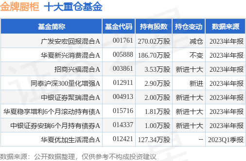 重仓金牌厨柜的公募基金请见下表: