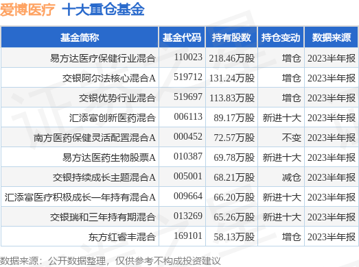 重仓爱博医疗的前十大公募基金请见下表: