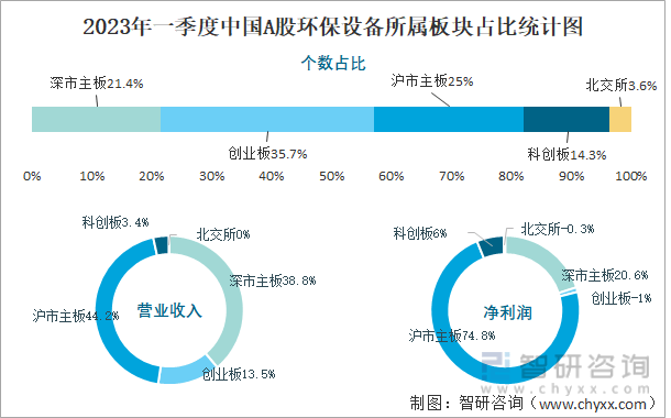 2023年一季度中国A股环保设备所属板块占比统计图