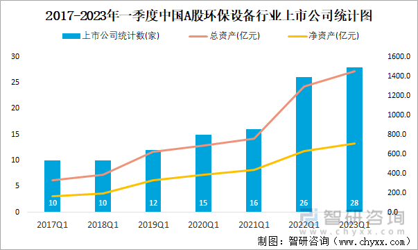 2017-2023年一季度中国A股环保设备行业上市公司统计图