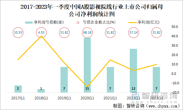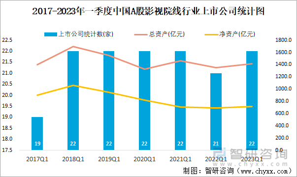 2017-2023年一季度中国A股影视院线行业上市公司统计图