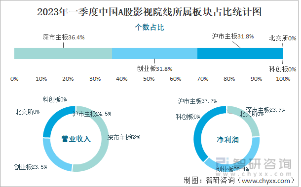 2023年一季度中国A股影视院线所属板块占比统计图