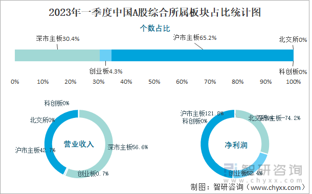 2023年一季度综合23家上市公司以沪市主板企业数最多,占比65.2%,营收主力为深市主板,深市主板净利润占比最多;总营收累计为162.43亿元,按2023年5月24日统计其上年同期营收增加了18.79%(统计时间有细微差异,23家企业上年一季度营收为136.73亿元);累计归属母公司净利润为-0.91亿元,11家企业净利润出现亏损,占比总企业数的47.83%。