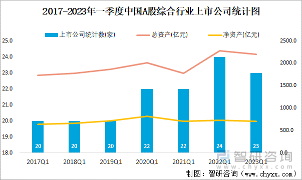2017-2023年一季度中国A股综合行业上市公司统计图