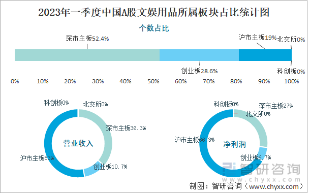 2023年一季度中国A股文娱用品所属板块占比统计图
