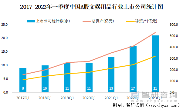 2017-2023年一季度中国A股文娱用品行业上市公司统计图